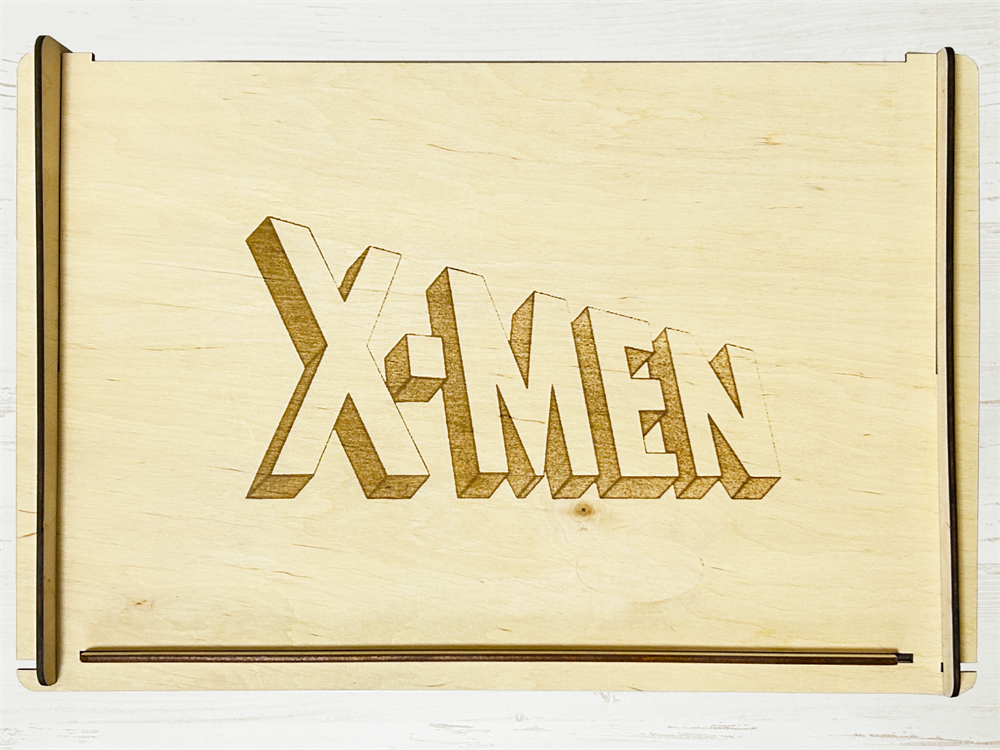 - На лицевых сторонах присутствует лазерная гравировка с названием X-Men и всей командой, а на боковых Росомаха и логотипом.